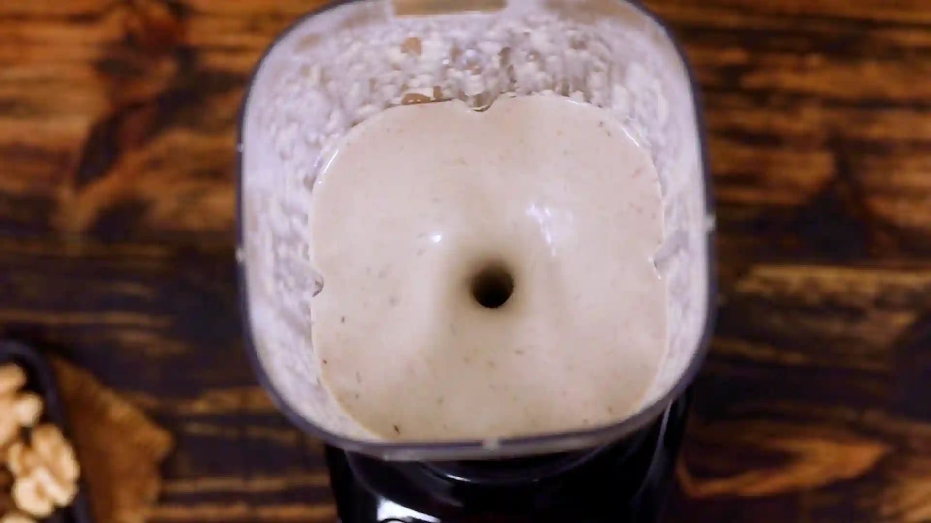 In the morning, you simply drain the water, add everything into a mixer along with a ripe banana and chilled milk, and blend until silky smooth.