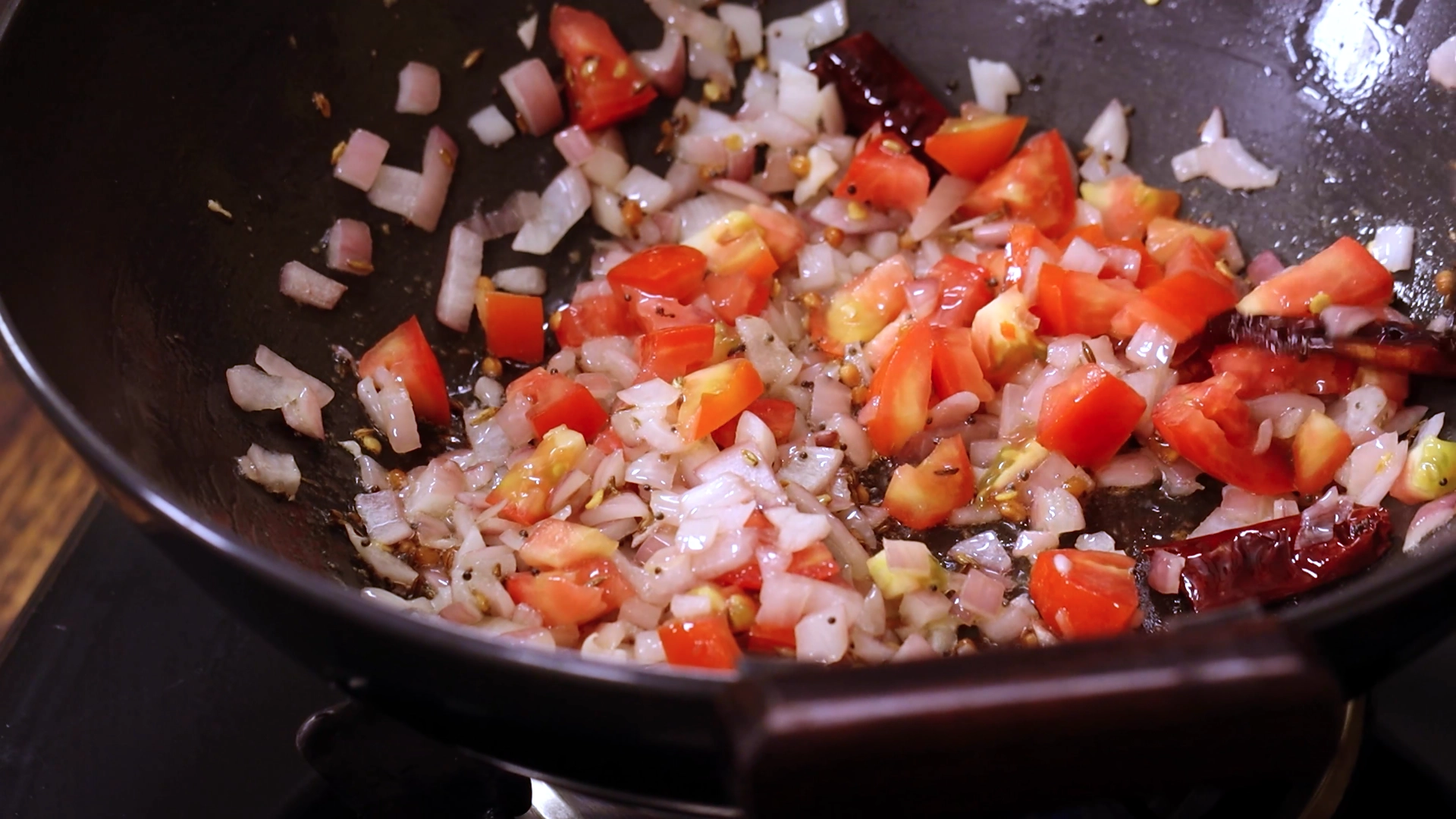 - Tempering (Urad Dal, Mustard, Cumin, Red Chilies, Hing): Pops, crackles, and umami.