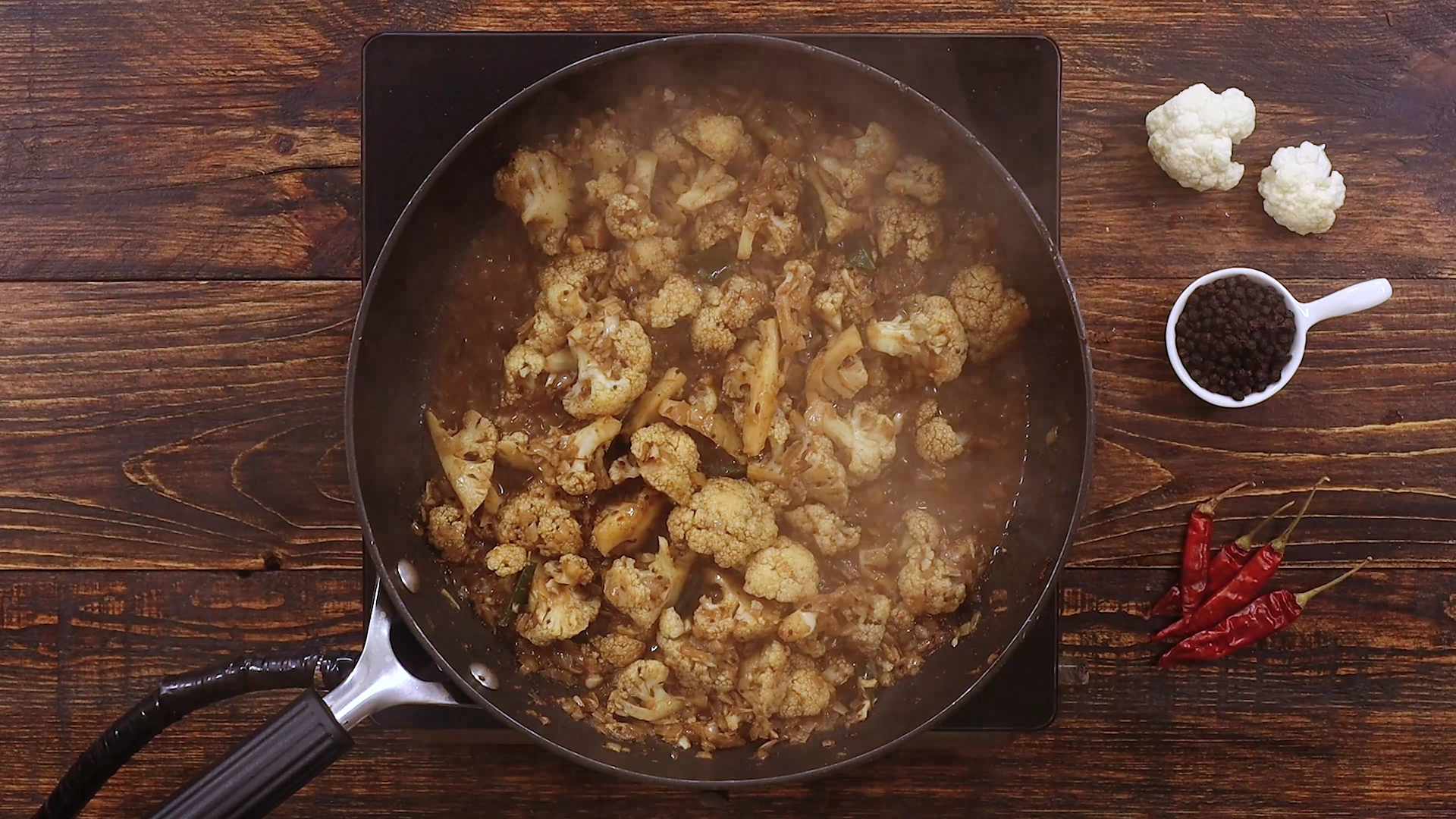 - Cauliflower Curry — homely cauliflower cooked in a fragrant, saucy gravy — great as a main with rotis.