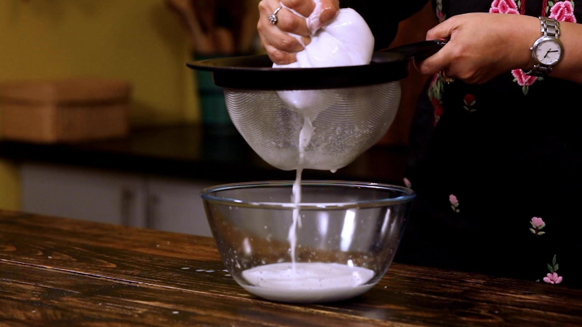 Strain the blended coconut with muslin cloth and set the fresh coconut milk aside -