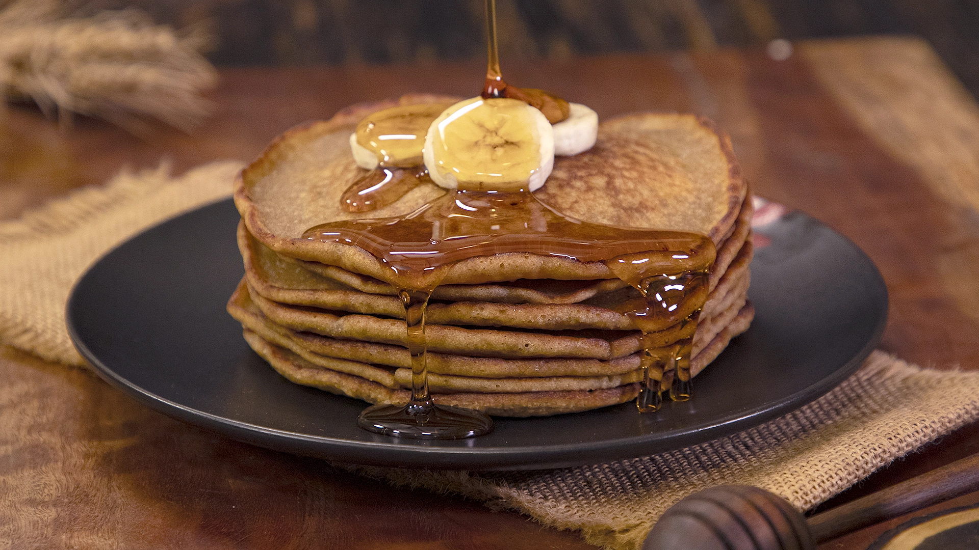 Plate the pancakes and drizzle honey or maple syrup; enjoy warm