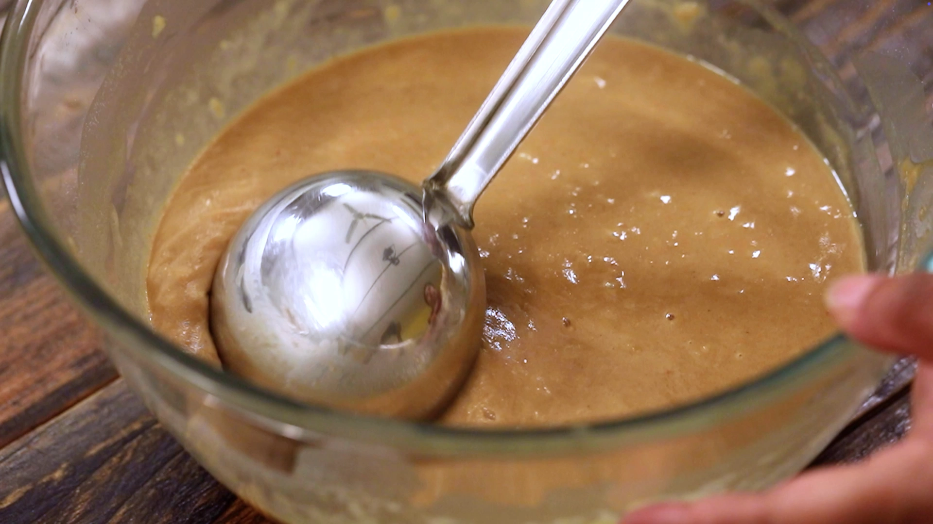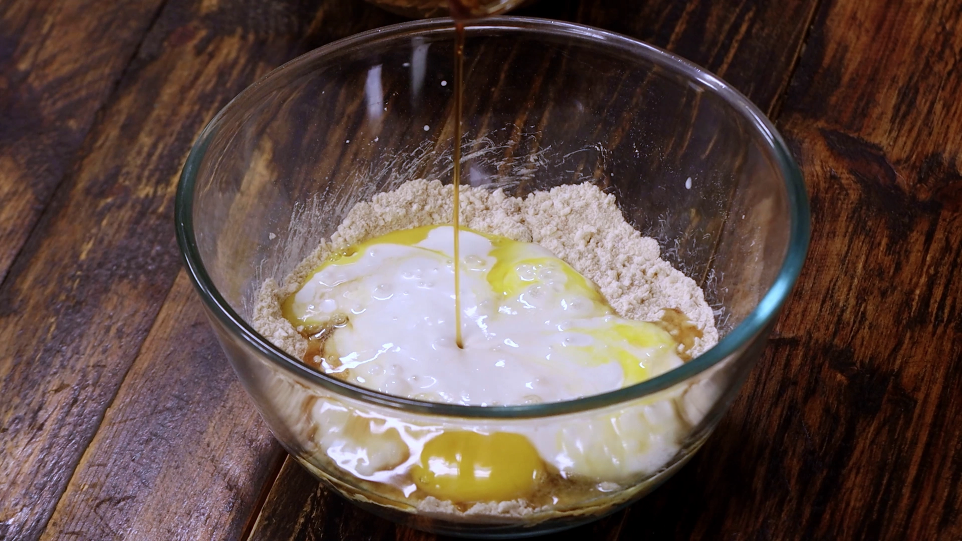 Add coconut milk and honey and whisk until the batter is smooth and lump-free