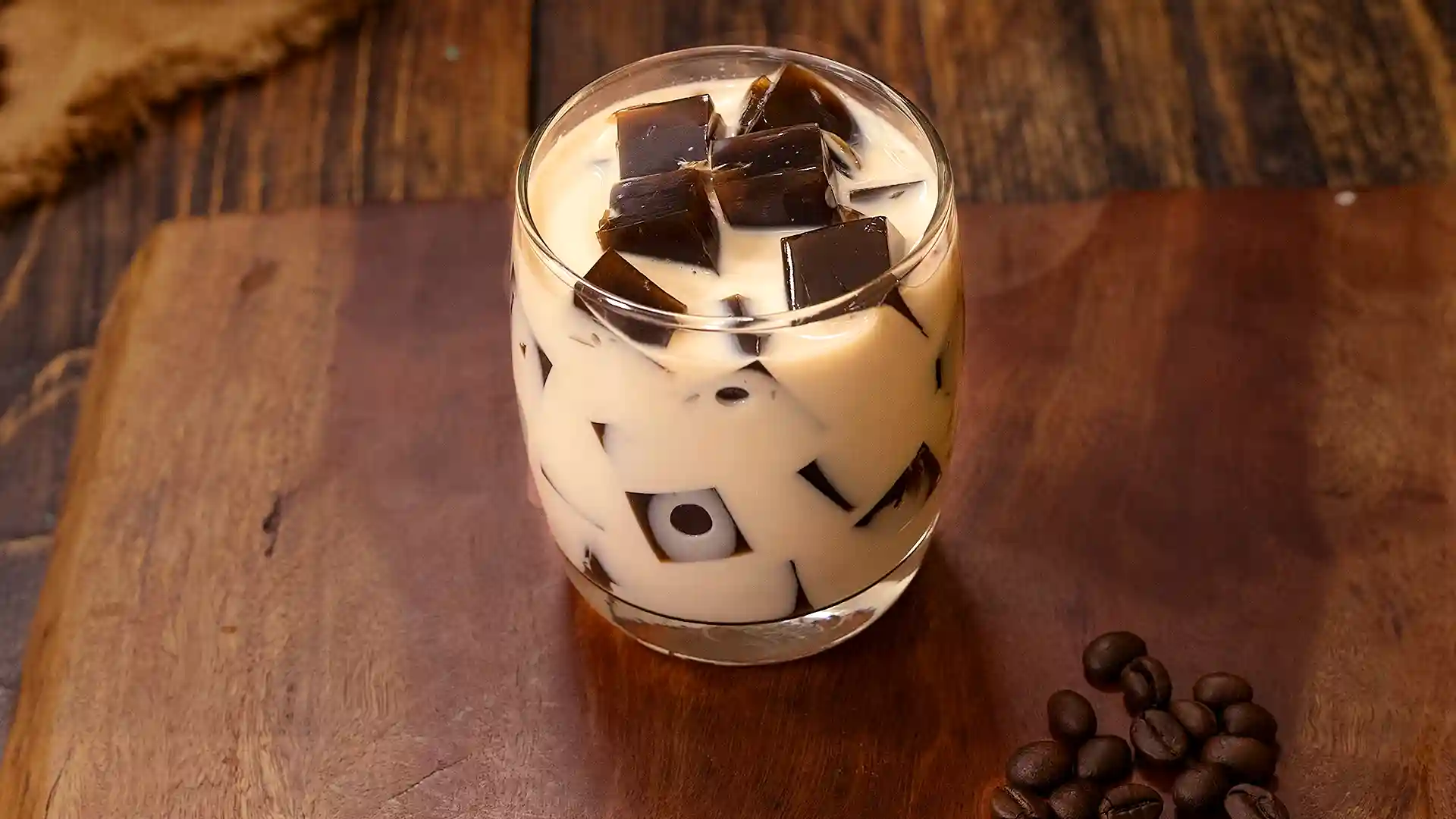 • Milk & Condensed Milk: The milk mixture softens coffee bitterness and creates a creamy base that contrasts beautifully with the jelly cubes.