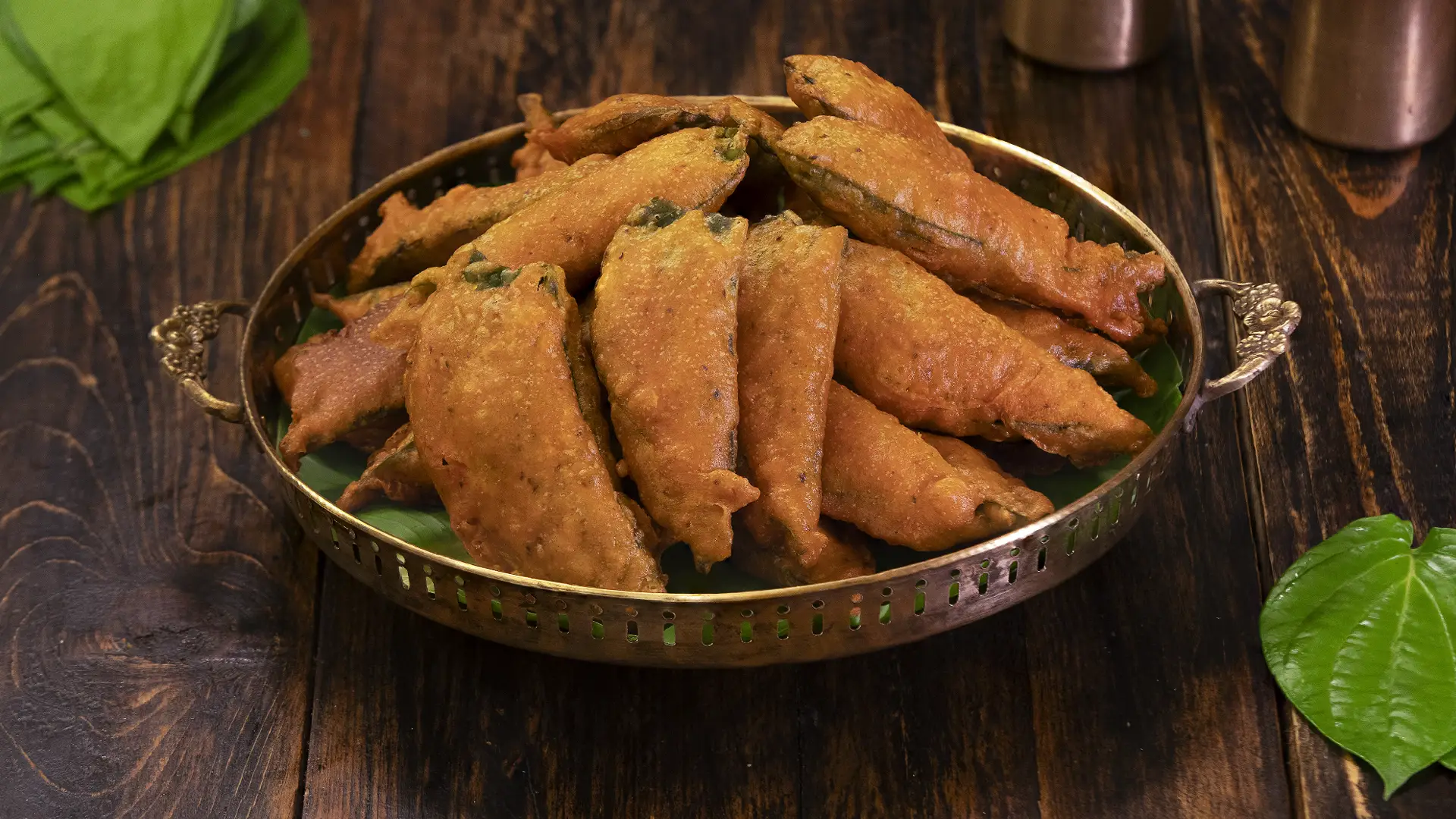 Betel leaf bajji is a South Indian street-food favourite. Using tamalapaku (betel or paan leaf) as the canvas, the leaf gets dipped in a spiced gram-flour batter and deep-fried until lacy and crunchy.