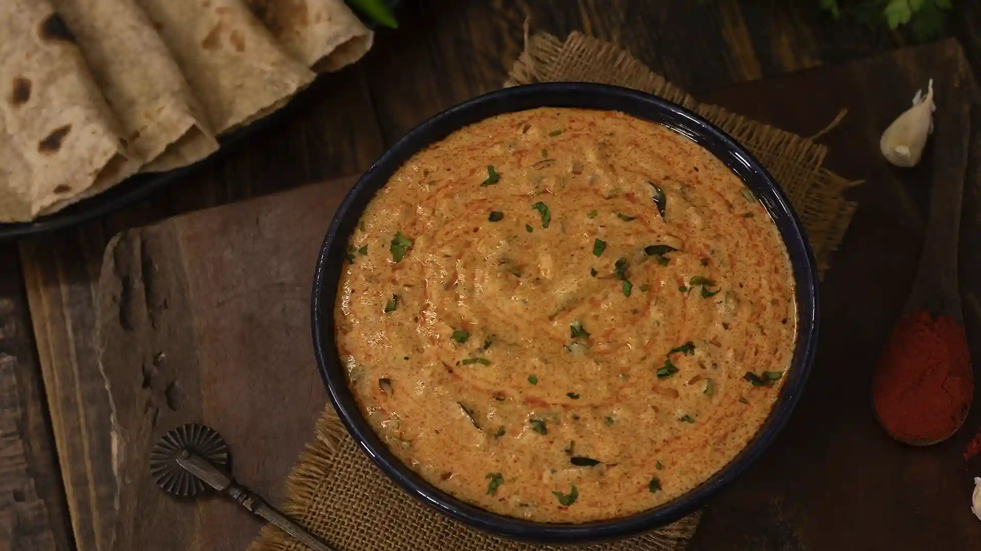 This spicy Dahi Tikhari by Hema Subramanian is a simple North Indian curd‑based dish made with garlic, chilli, and mild spices. Perfect with chapathi or phulka and ready in minutes.
