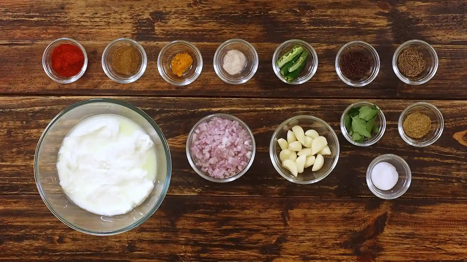 - Raw Mango Chutney – tangy chutney that balances the mild yogurt gravy.