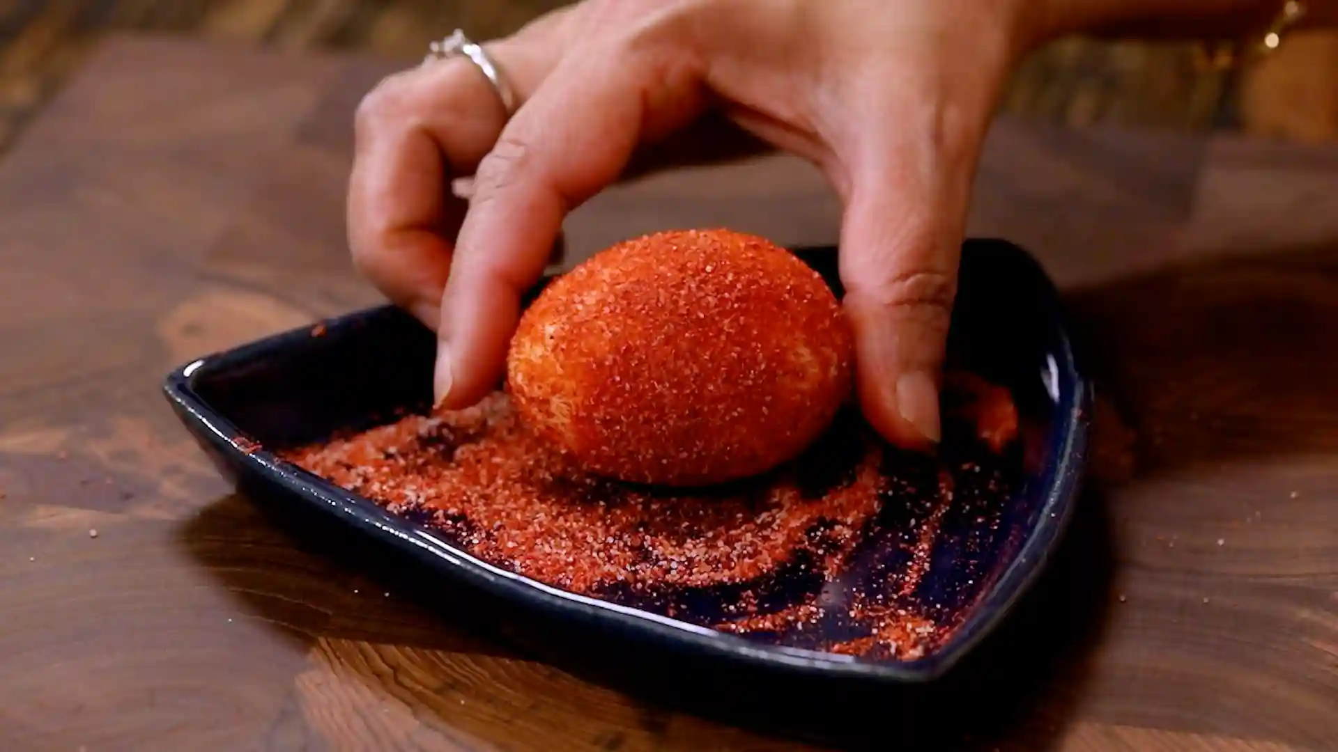 Roll the boiled egg in salt and chilli powder mixture for extra flavor. -
