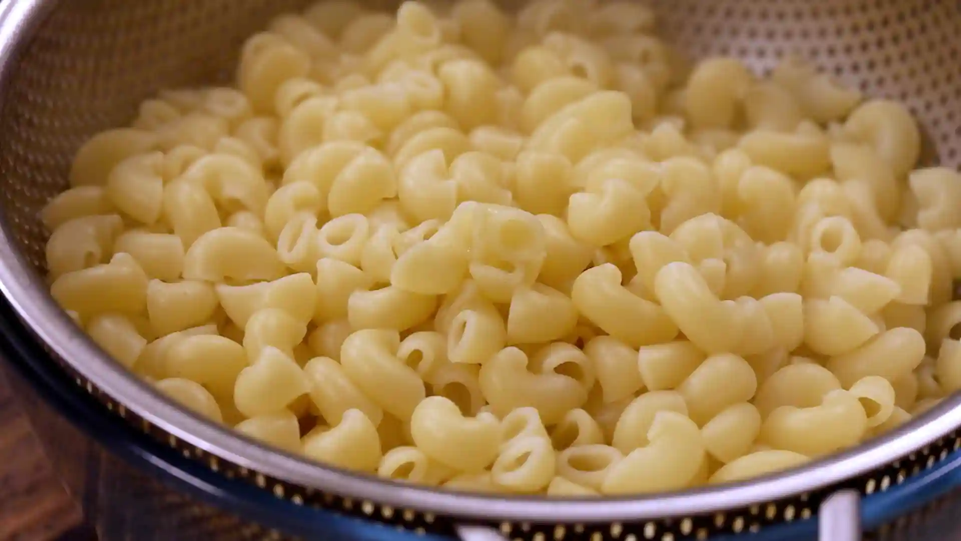 First, you boil your macaroni in well-salted water until it’s fully cooked but still firm. Once drained, keep it aside so it doesn’t overcook.