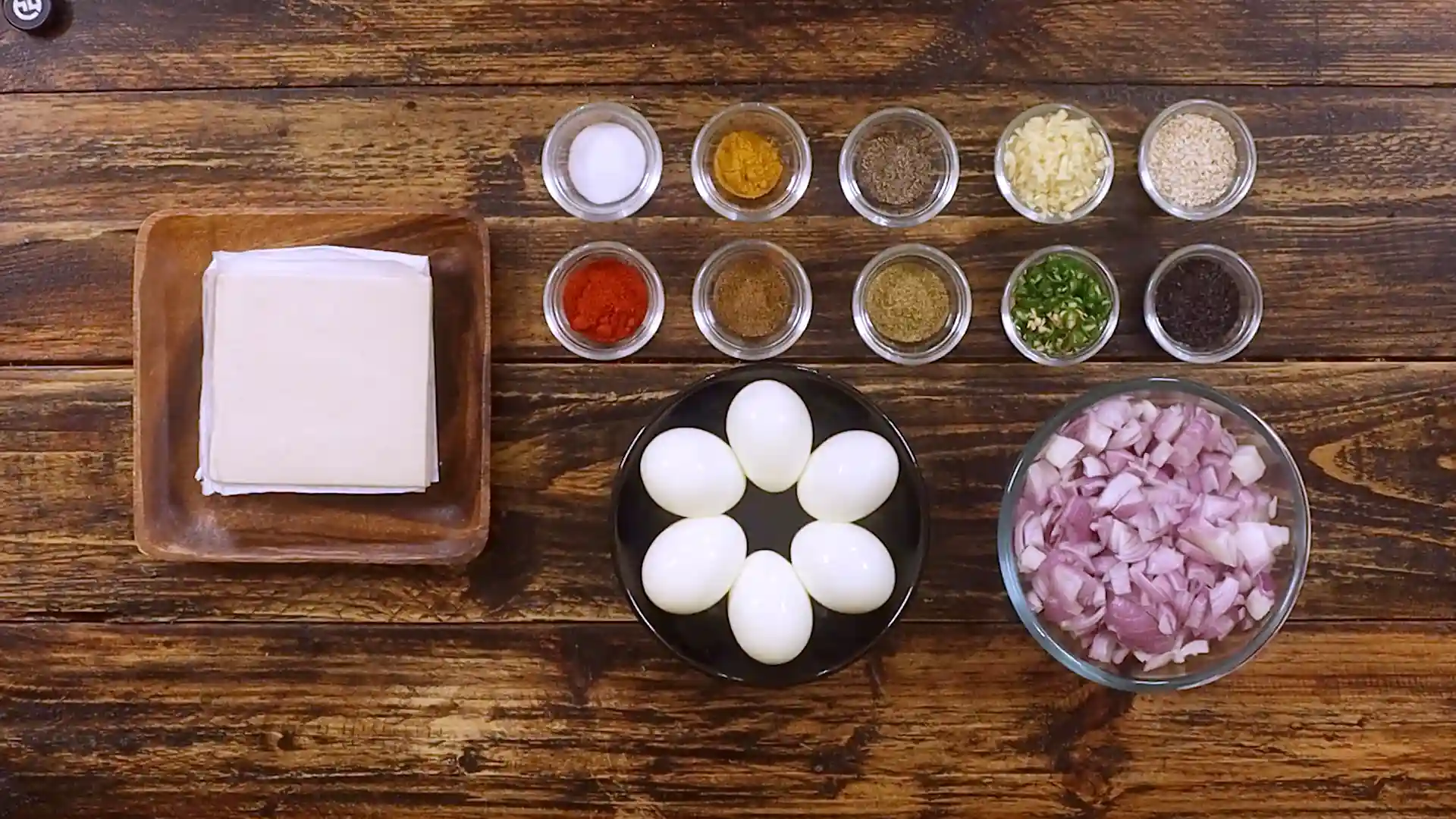Place onion masala and one-half boiled egg in the center of each pastry square, fold opposite corners and seal edges firmly