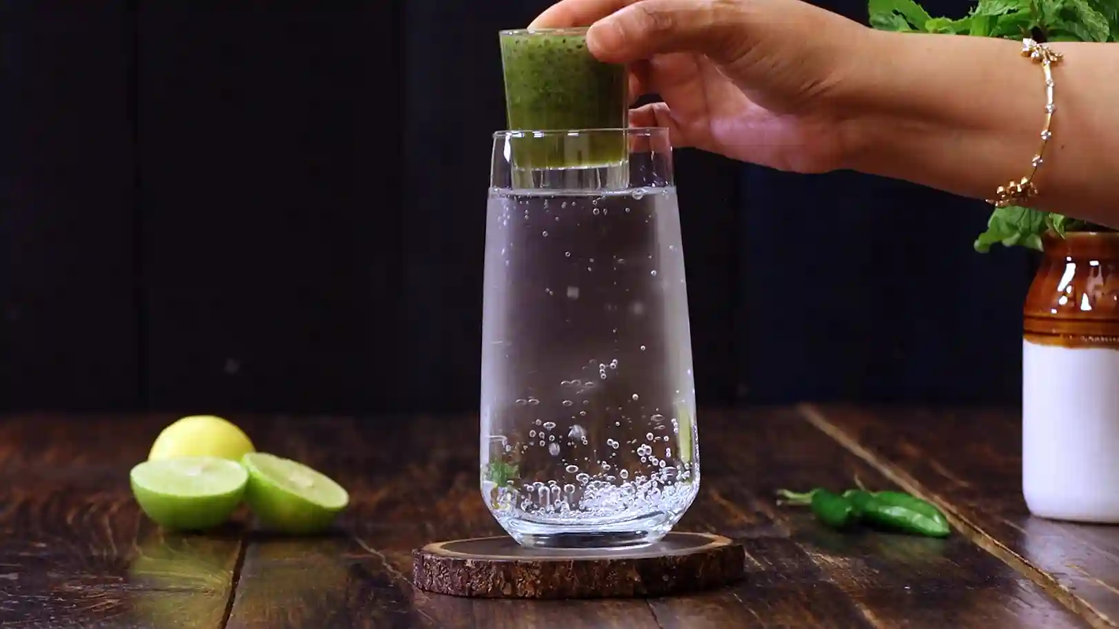 Add mint masala paste to the lemon juice -