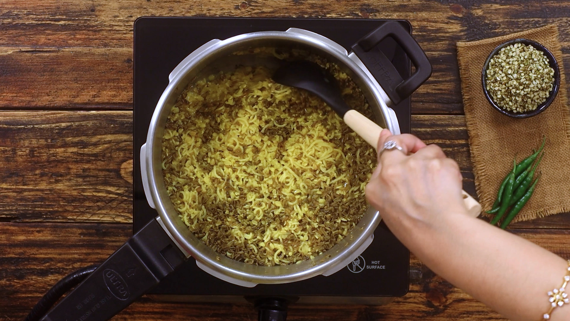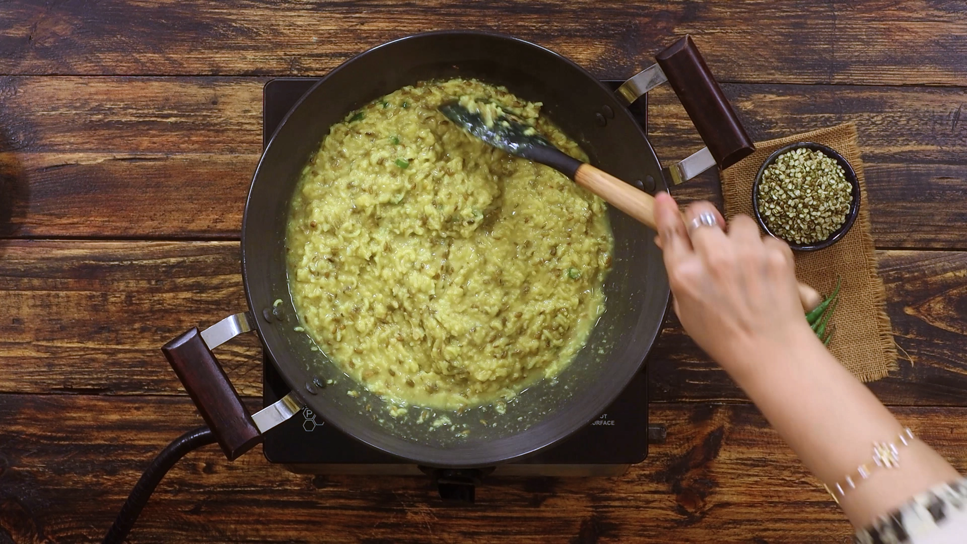 Allow pressure to release naturally and open lid. Mix the cooked dal and rice gently -