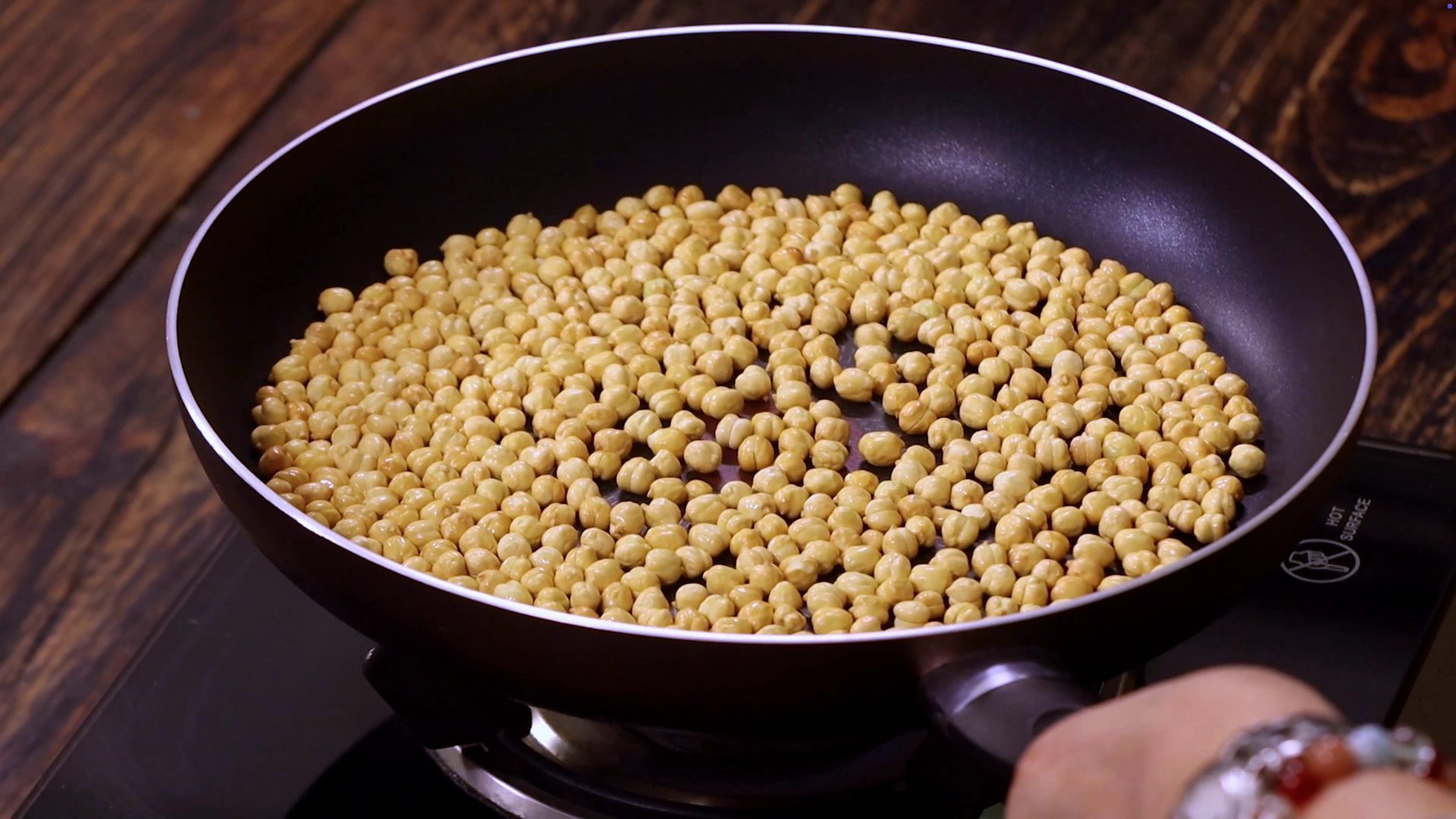 Roast the whole roasted gram with a little ghee on medium flame until golden and aromatic