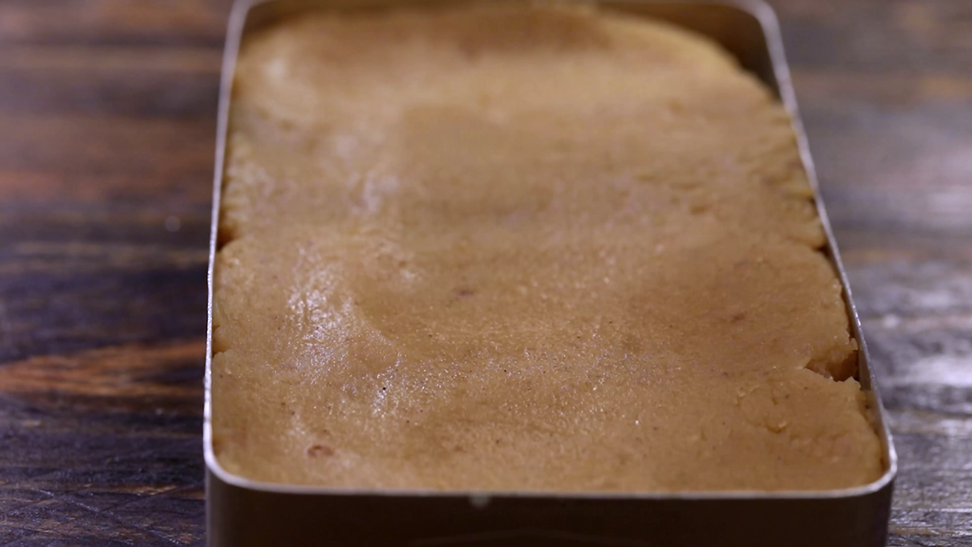 Lightly grease the setting tin so burfi releases easily