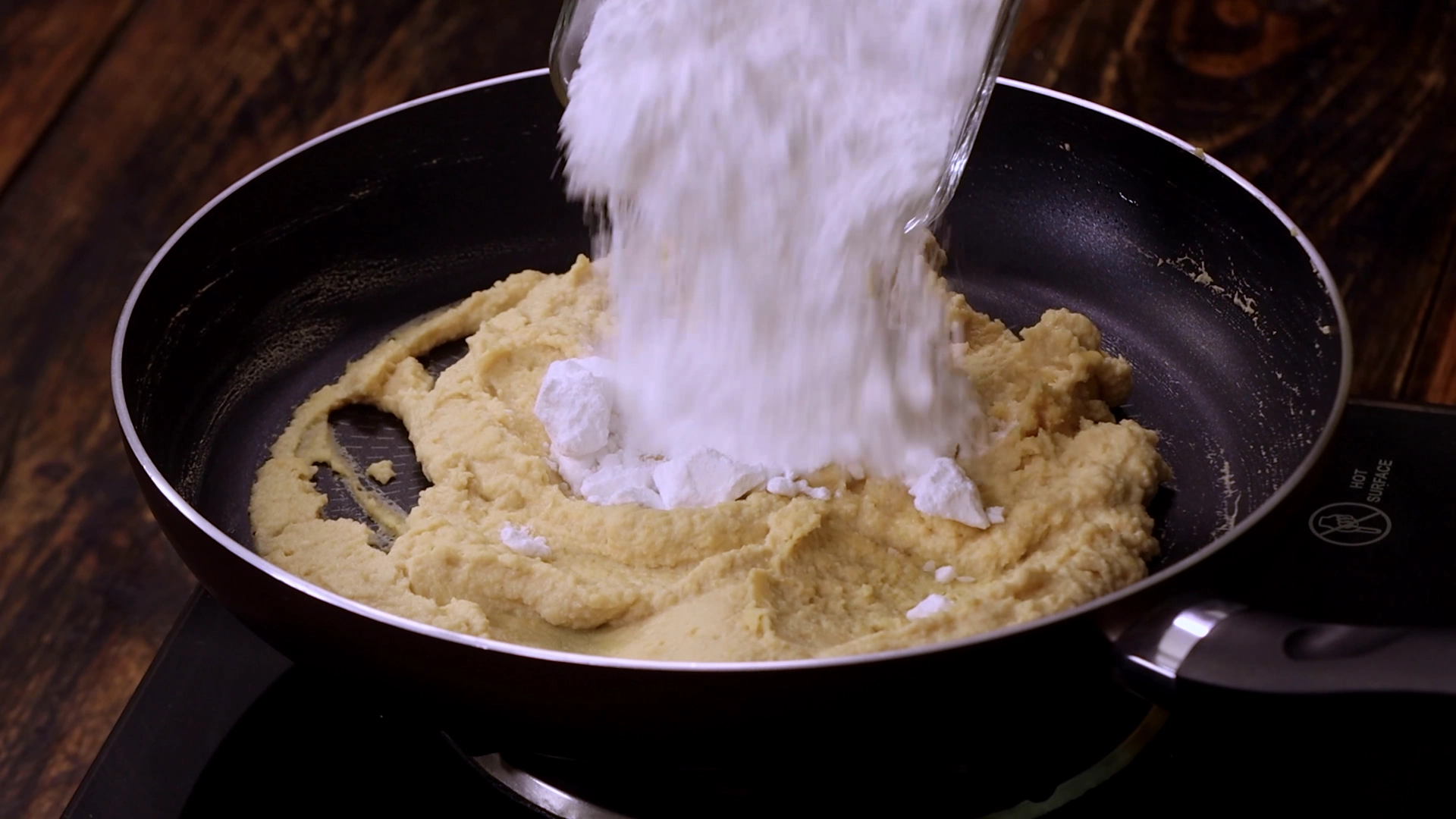 Cook on low flame, gradually add powdered sugar while mixing thoroughly -