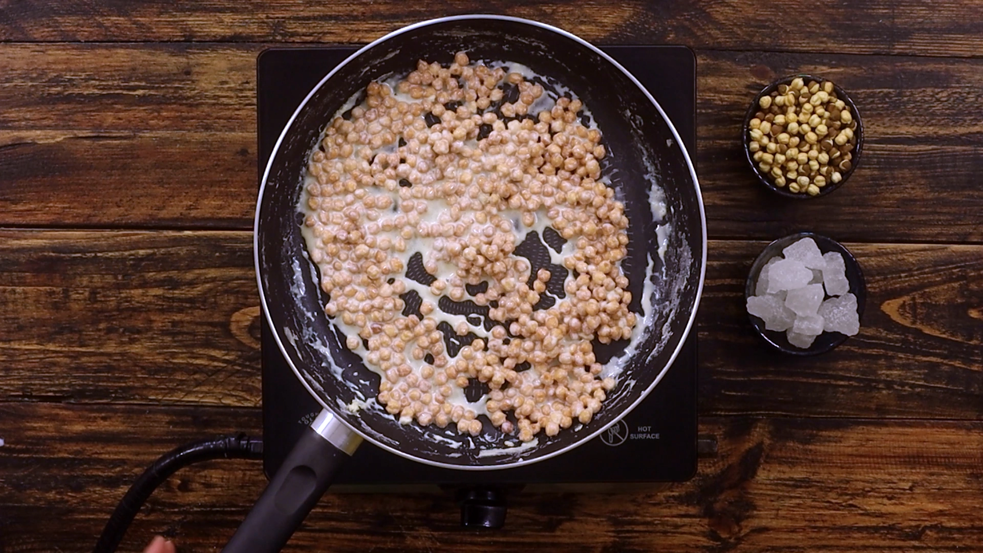 Once that base cools a bit, you grind or pulse it to get the texture you want — some people prefer a slightly coarse bite, others a smoother finish.