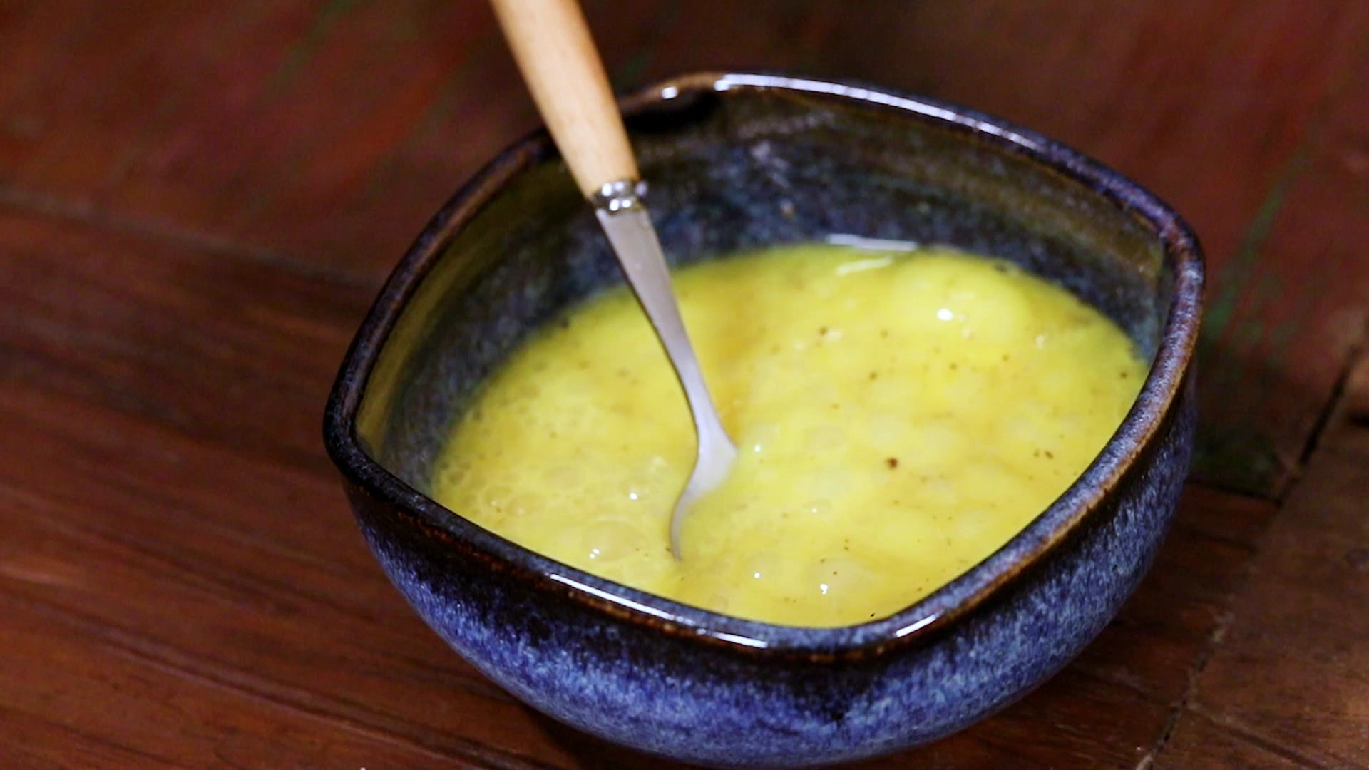 Crack and whisk the eggs with a pinch of salt and pepper.