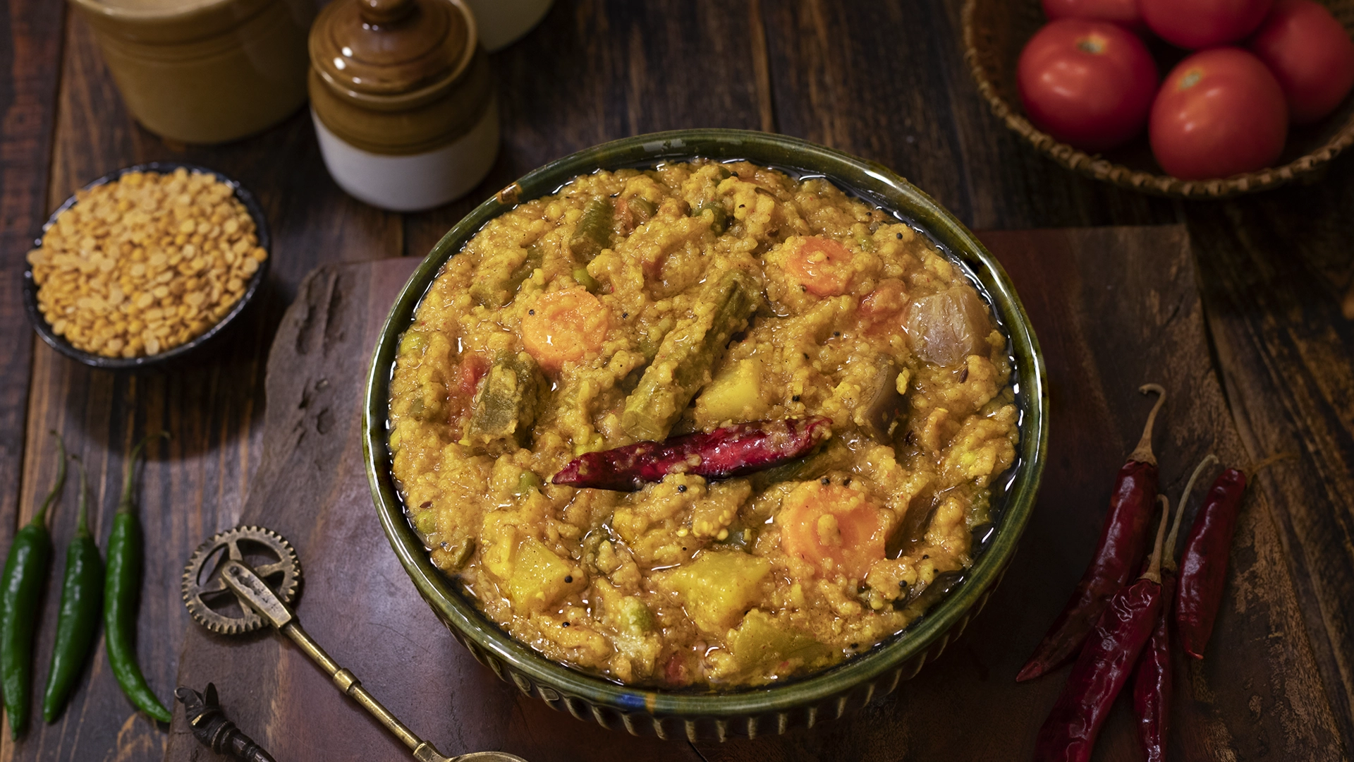 - Mixed veggies (potato, carrot, beans, lady’s finger, brinjal, drumstick, yellow pumpkin, peas, tomato): texture, color and nutrients. Pumpkin brings sweetness and body; drumstick adds a subtle rustic bite.