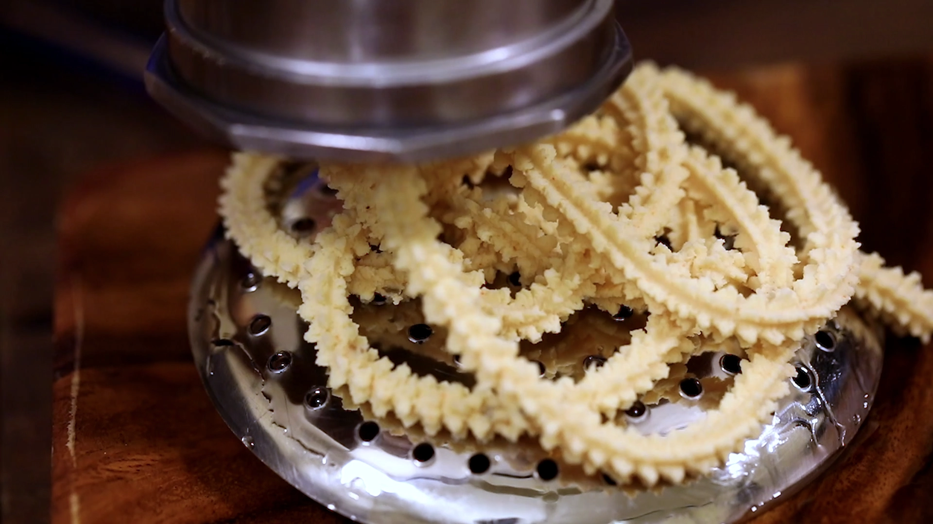 The basic idea is simple: a dough of rice flour (often mixed with a roasted lentil powder), shaped into spirals and deep-fried. Each region (and household) has its little twist — different flours, spices or pressing patterns.