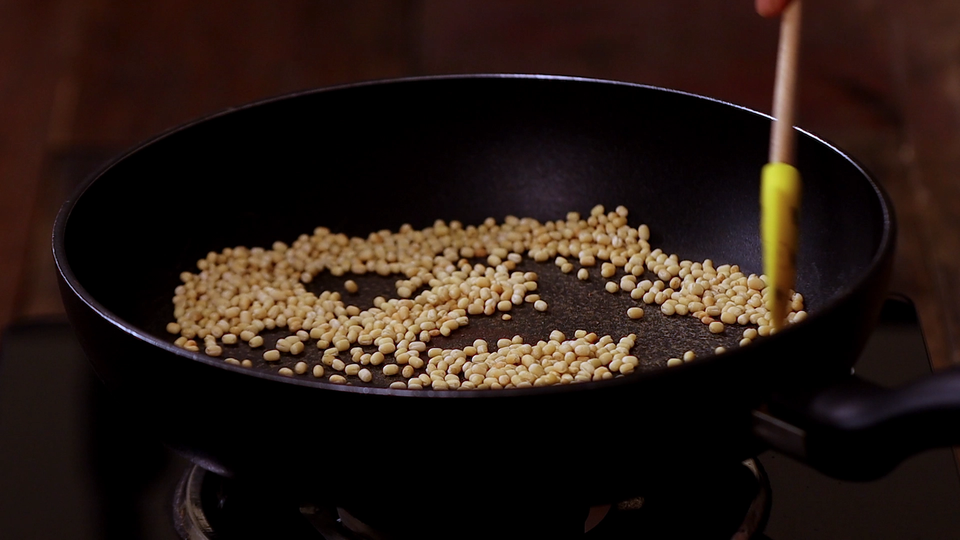 Roast urad dal in a pan until it turns a light golden brown, then remove from heat and let it cool completely.