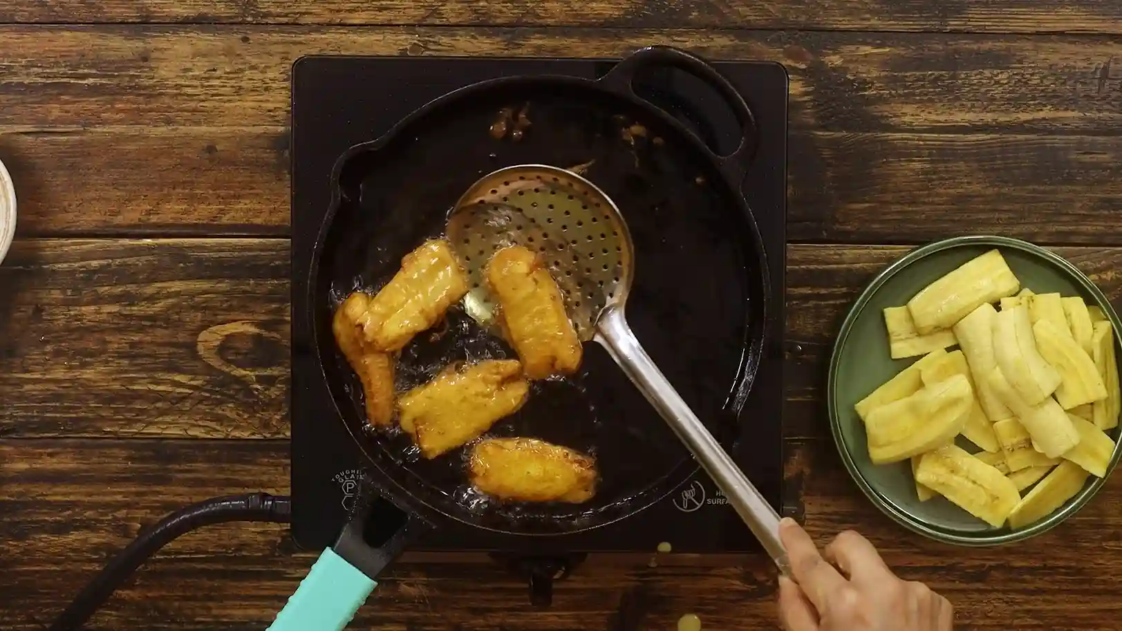- Even banana slices fry uniformly