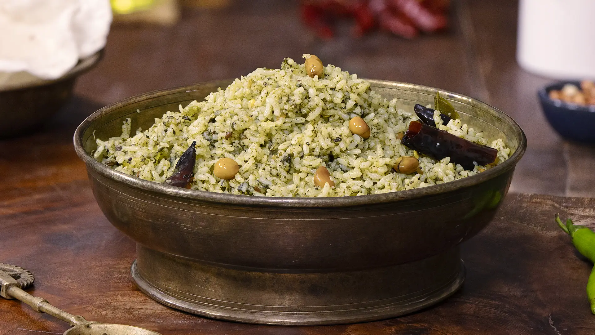 - Peanuts/chana dal/urad dal — textural contrast: crunchy pops against soft rice.