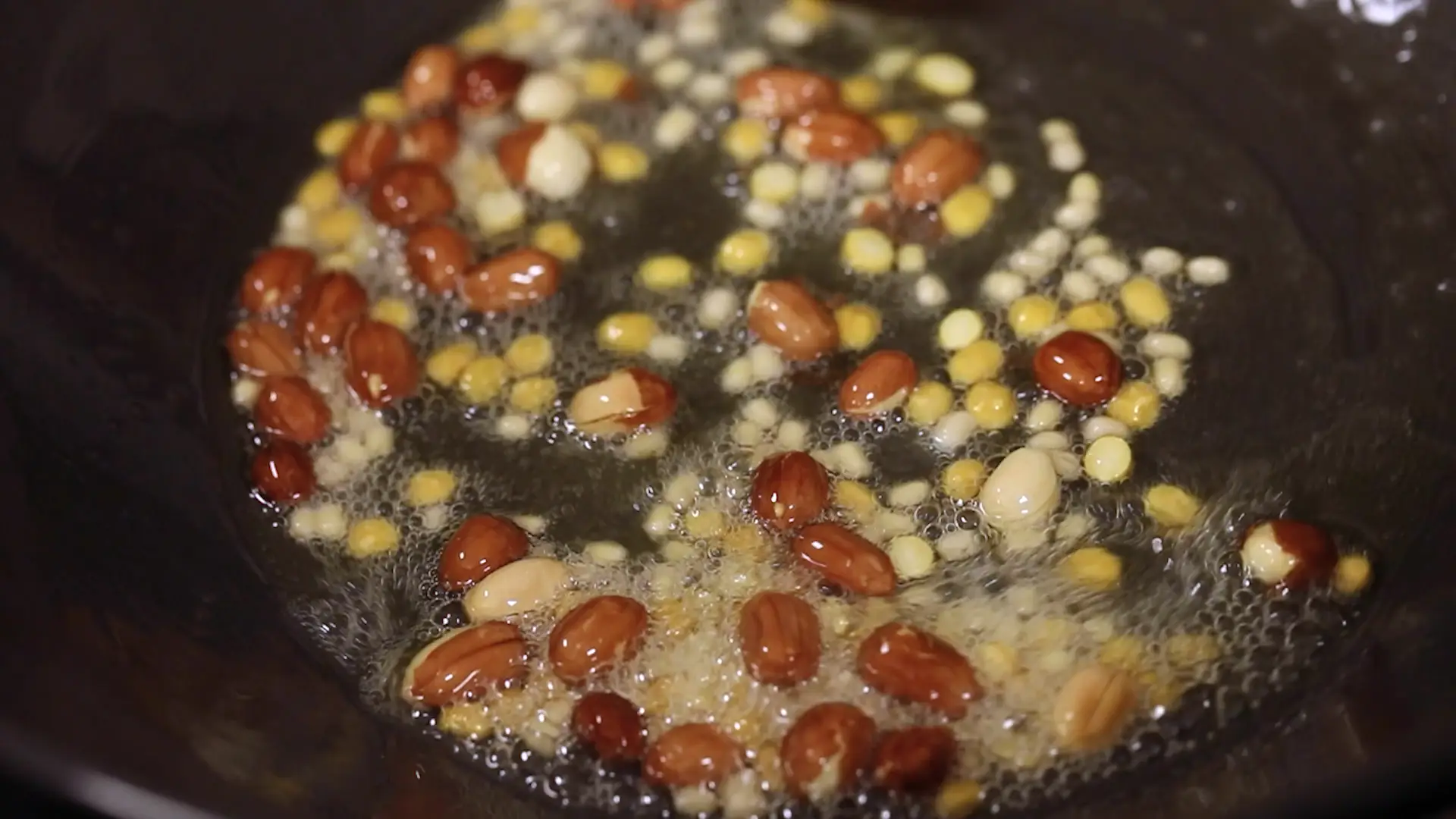 Heat oil and roast peanuts