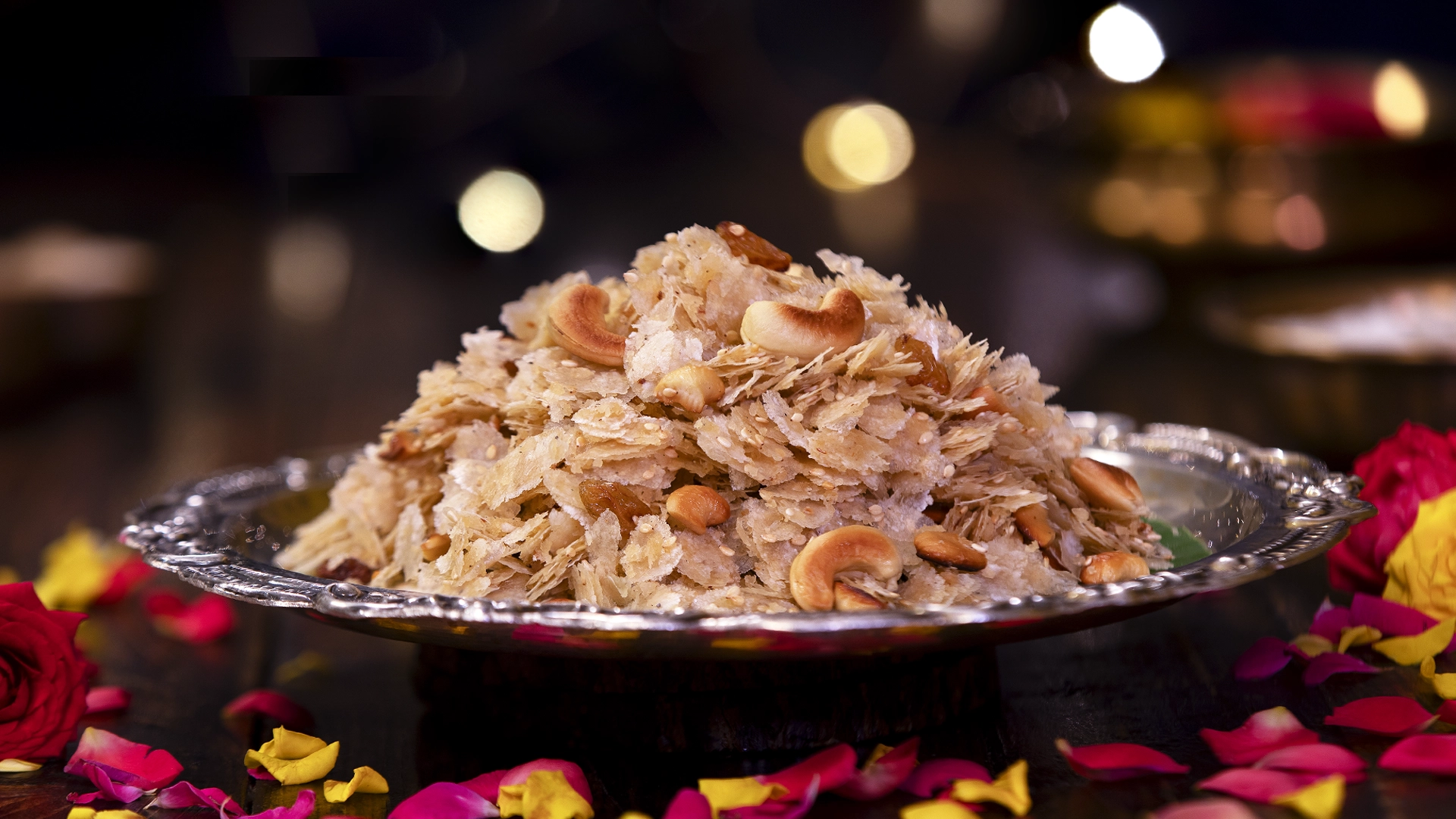 - Rava Kesari — saffron-scented semolina pudding — a soft, aromatic sweet.