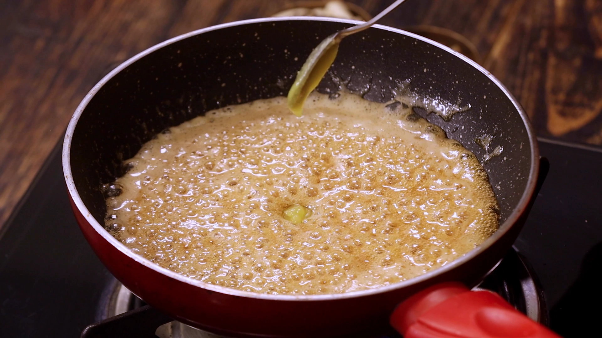 Just melt jaggery with a splash of water until smooth and slightly thick — not sticky or stringy. When it glistens, you know it’s ready.
